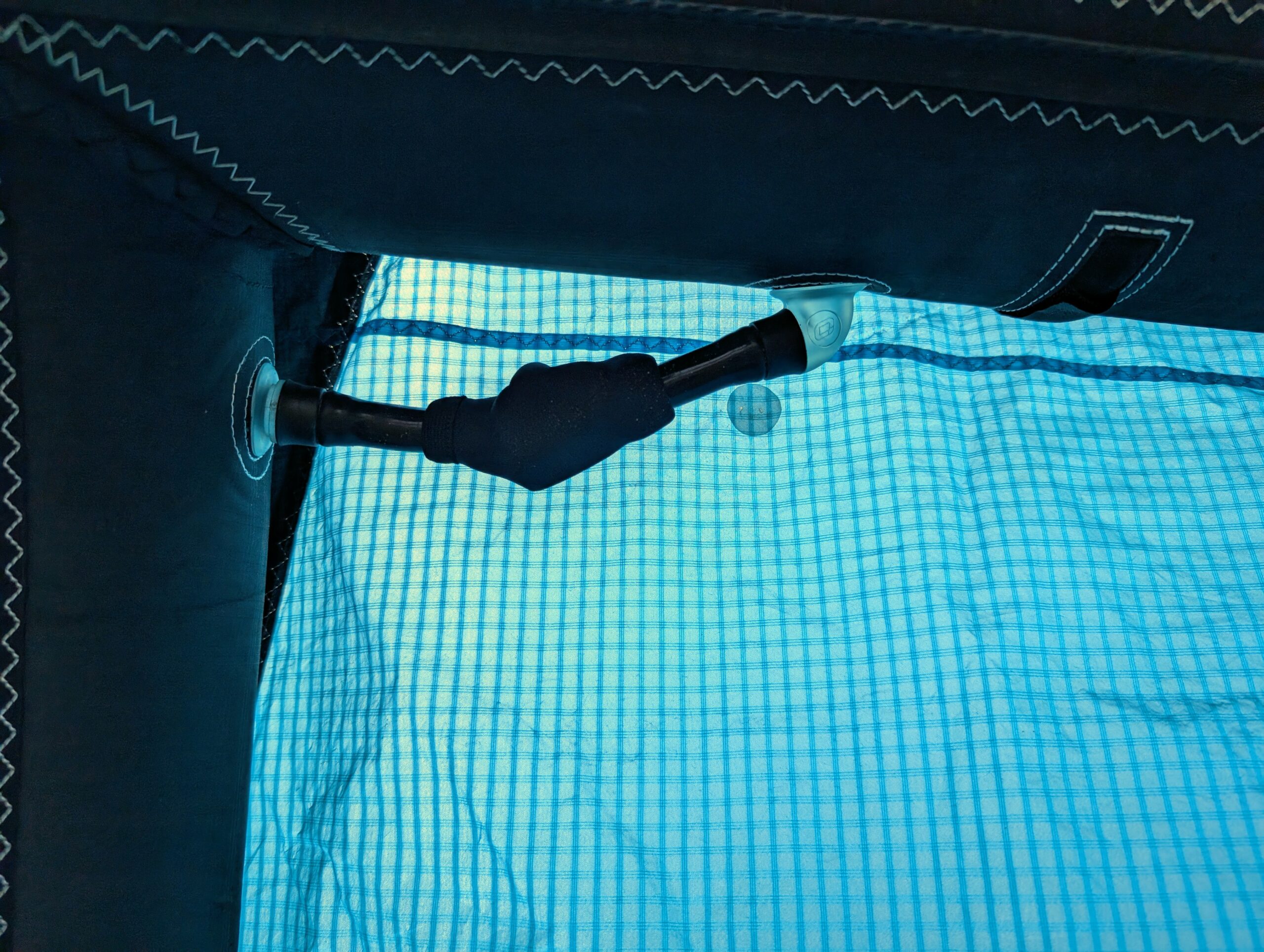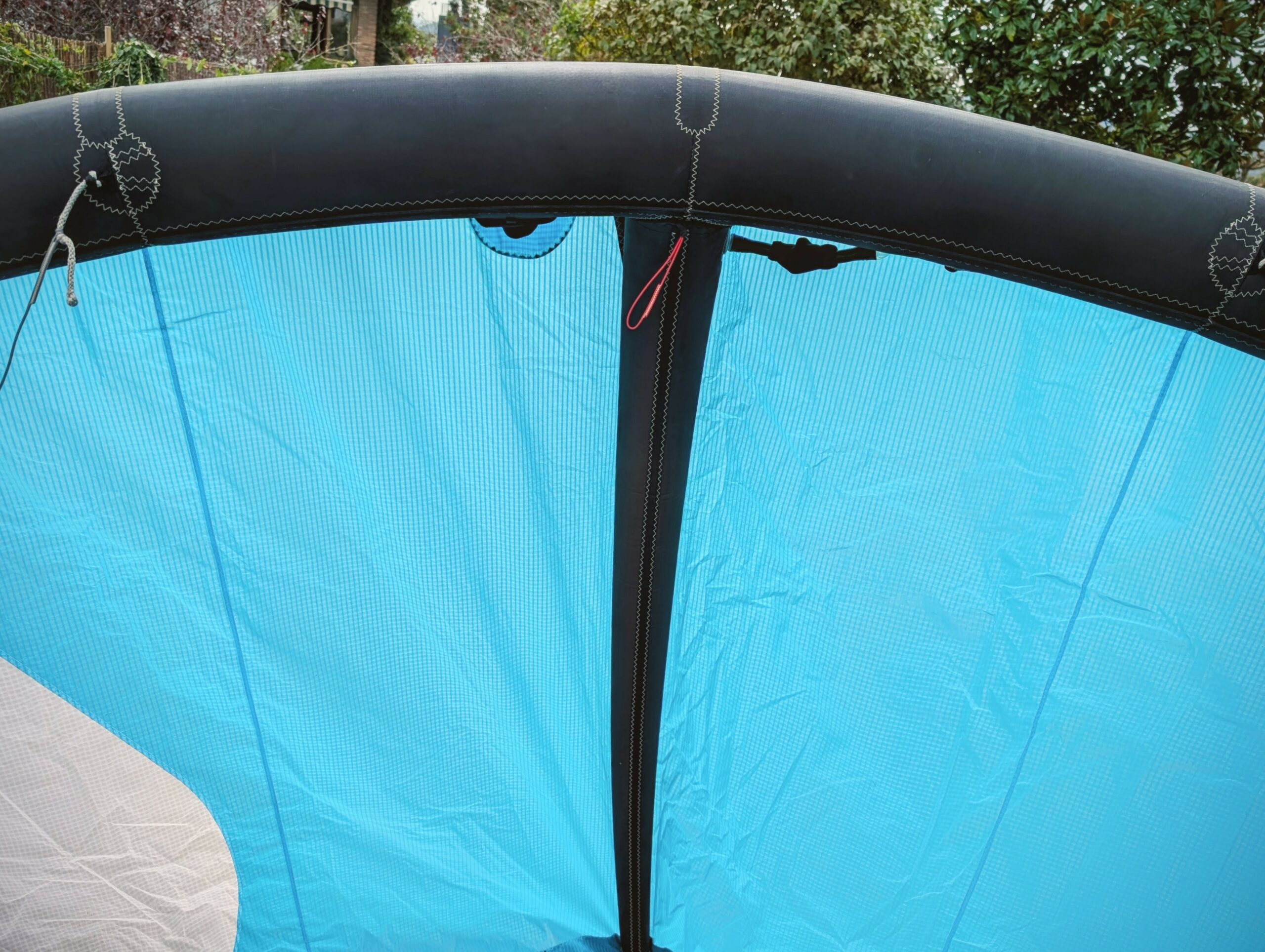 Cometa Kitesurf Ozone Alpha V2 7m Custom No Logo, Ăşnica cometa sin logos ni nombres, con solo una costilla, muy ligera. Borde de ataque continuous curve. Una pasada para olas, freeride y foil. En perfecto estado, solo un poro bien protegido en la zona del one pump (ver fotos). Vendo por lesiĂłn, como el resto del material en mi perfil. Va sin bolsa, solo cometa.